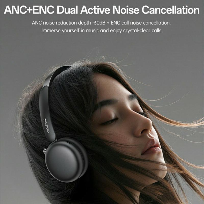 • Casque sans fil Yesido EP13 avec ANC+ENC - Haut-parleurs en titane de 40 mm, batterie d'une autonomie de 50 heures, BT 5.3, mode jeu, commande rotative