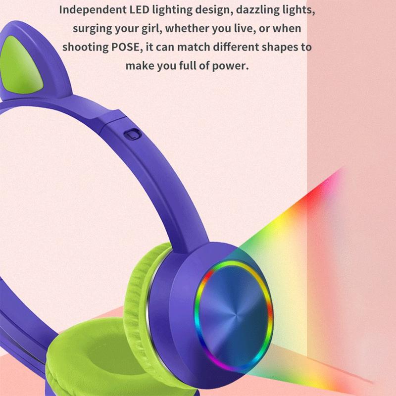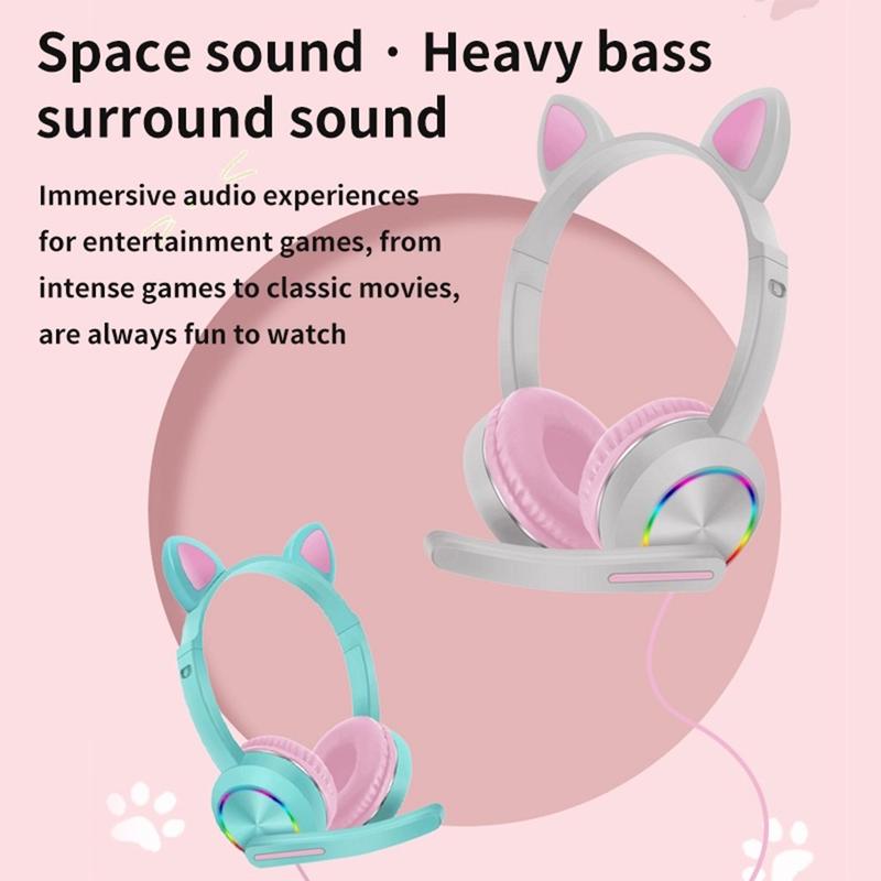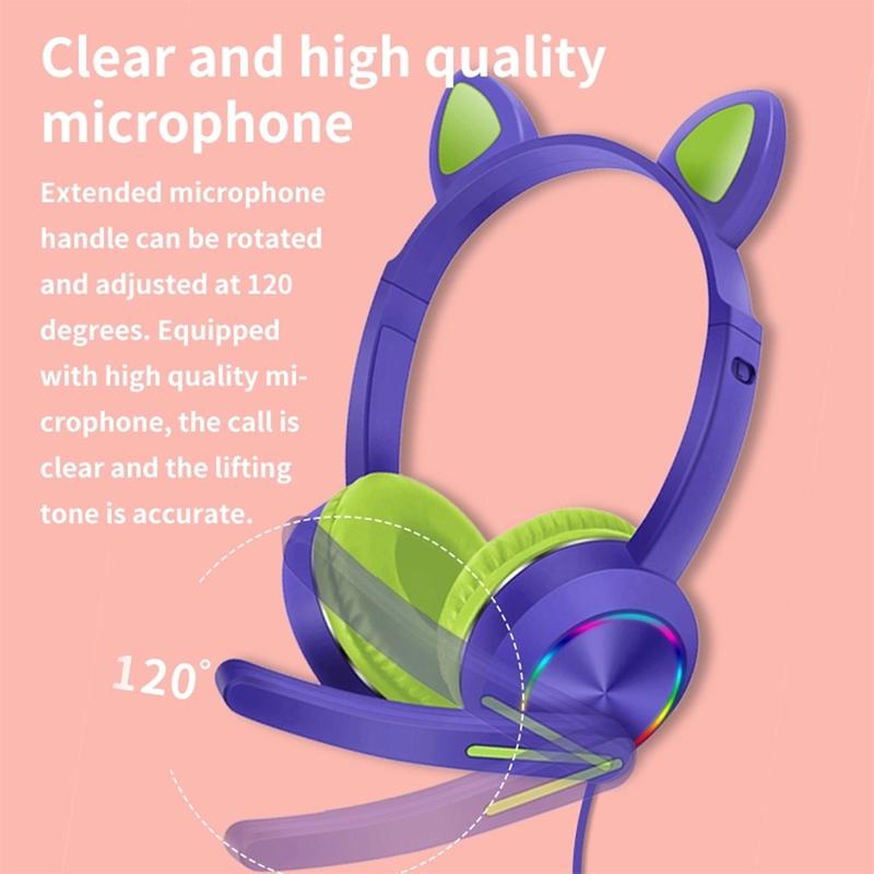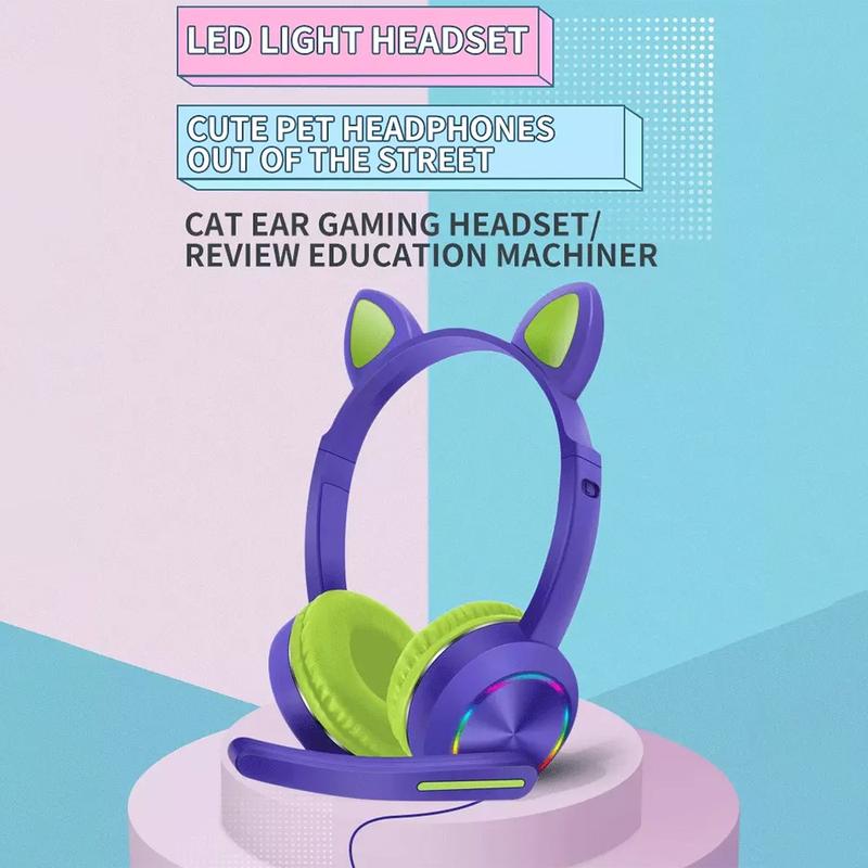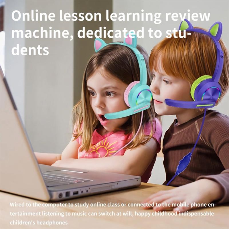 Cat Ears AKZ-020 Casque supra-auriculaire filaire pour enfants / Casque de jeu avec microphone, lumière LED - 115dB, 40mm