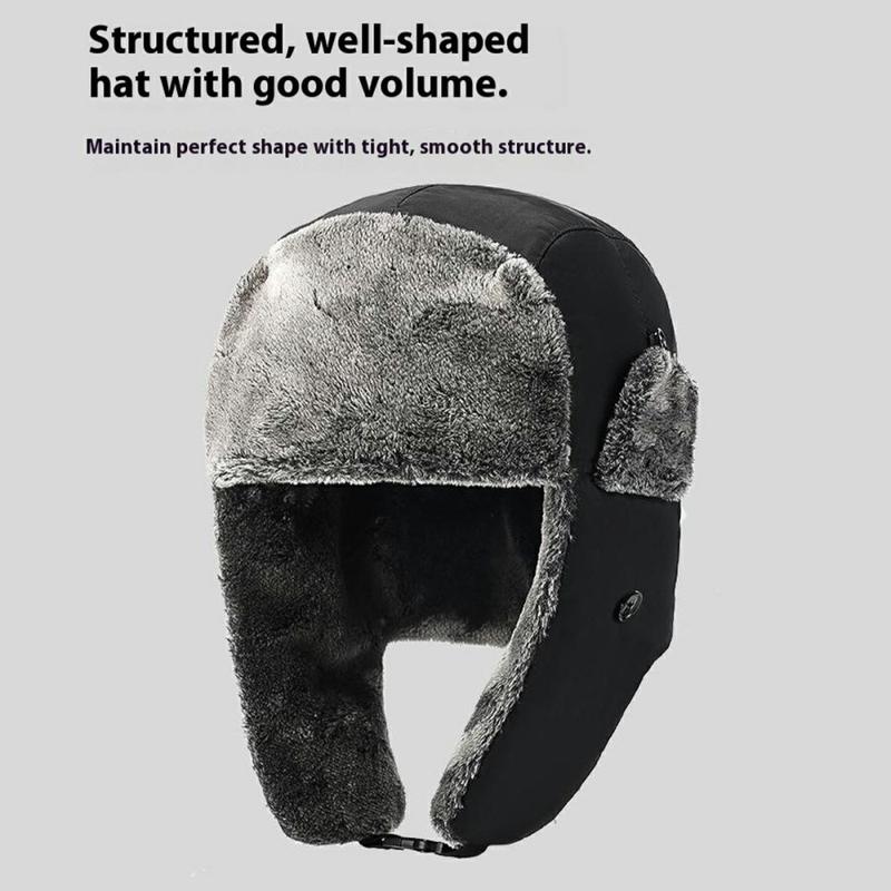 • Chapeau de trappeur d'hiver - Bonnet d'extérieur chaud et épais doublé de laine polaire avec protection des oreilles et coupe-vent