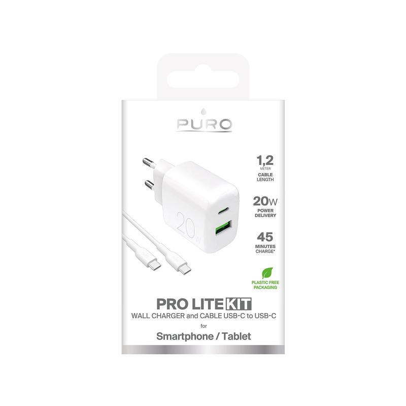 Chargeur à double port Puro Prolite 20W avec câble USB-C - Chargement polyvalent pour tous vos appareils