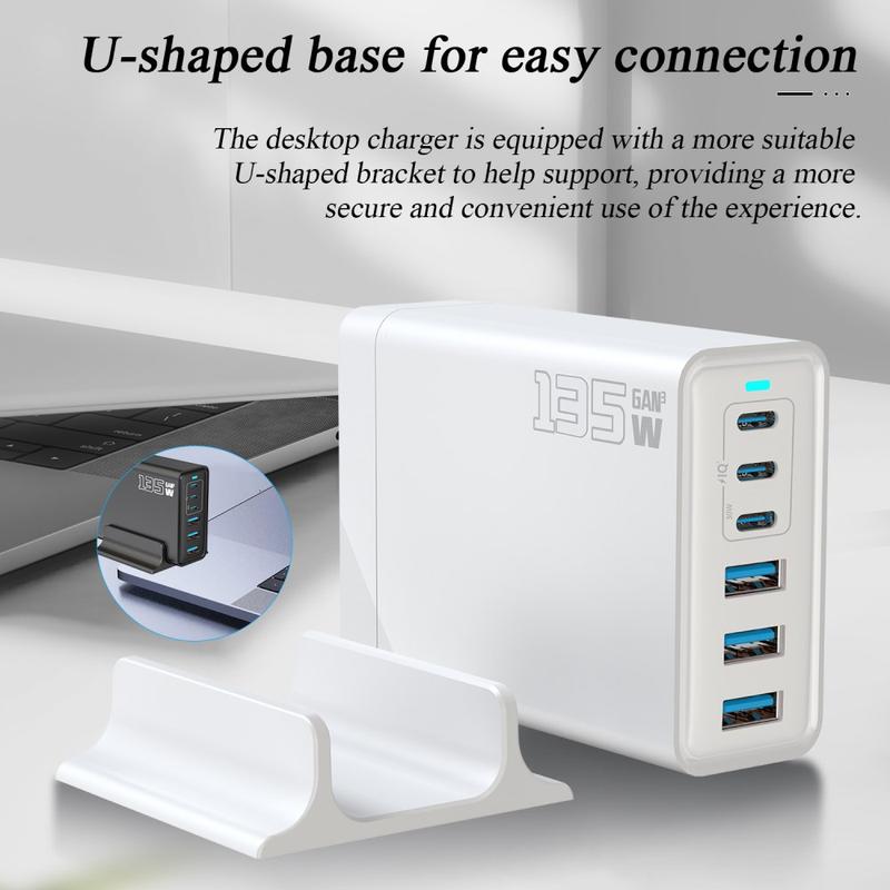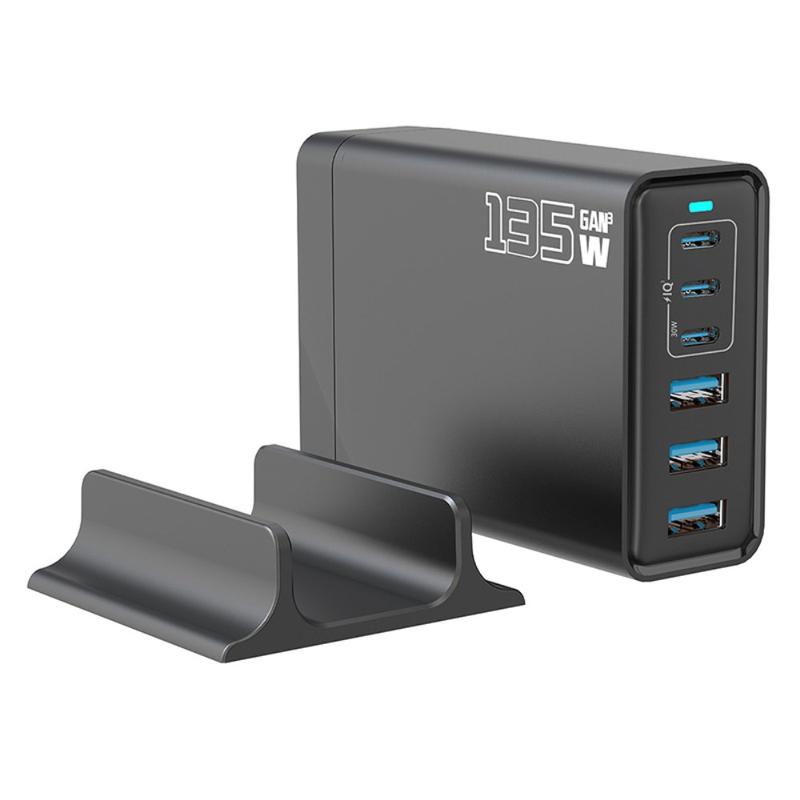 Chargeur de bureau GaN 135W / Station de charge haute vitesse à 6 ports - 3x USB-C, 3x USB-A