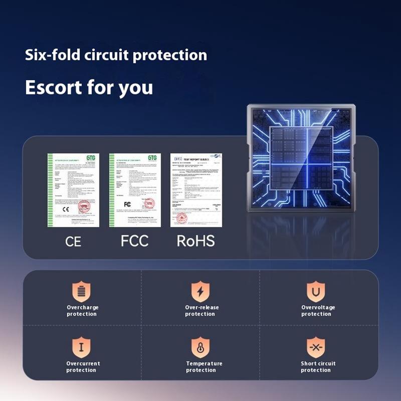 - Triple protection électronique - distribution intelligente de l'énergie et protections intégrées contre les surtensions, les surintensités et les courts-circuits.
