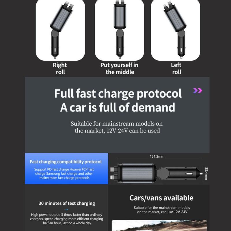 Il condense un chargeur rapide à haut rendement, deux câbles rétractables durables, un projecteur d'étoiles décoratif et un voltmètre de batterie en un seul appareil de la taille d'une paume, ce qui permet de réduire l'encombrement, d'économiser des prises et d'ajouter de l'élégance. Avec des protocoles PD/QC actualisés et une compatibilité totale 12 - 24 V, il s'agit d'une mise à niveau idéale pour tout conducteur de l'UE.