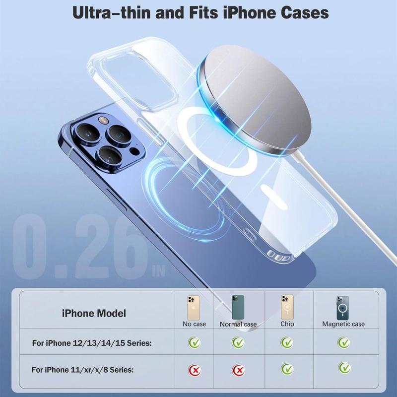 - Alignement magnétique instantané - L'anneau magnétique intégré se verrouille automatiquement sur votre iPhone ou vos AirPods pour un positionnement et un chargement parfaits en quelques secondes.