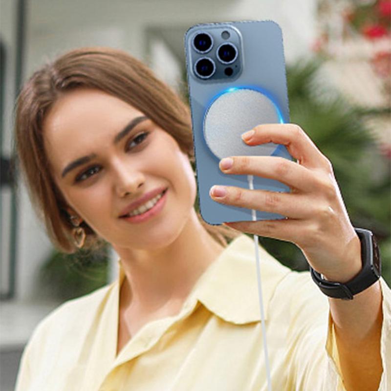 Alimentez vos appareils sans effort avec le chargeur magnétique sans fil, conçu pour un alignement MagSafe transparent et une charge sans fil rapide. Avec une puissance allant jusqu'à 15W, une protection intelligente et un design élégant en aluminium, c'est le mélange parfait de puissance, de précision et de style pour votre écosystème Apple.