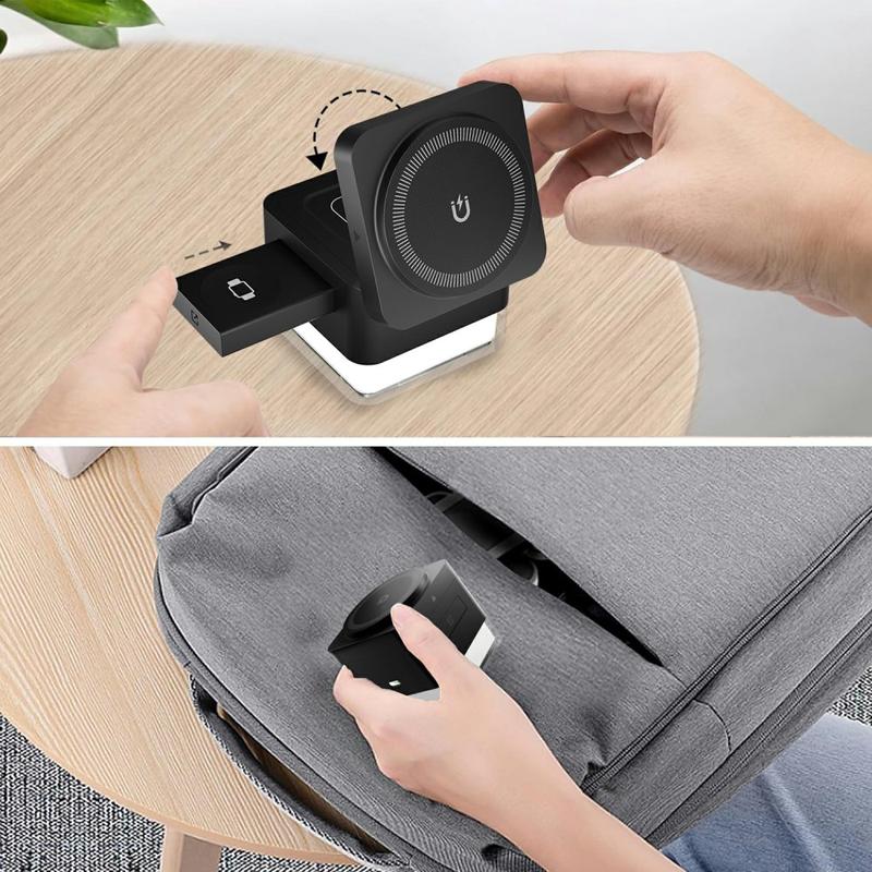 Gardez votre installation de recharge quotidienne bien rangée et pratique grâce à la station de recharge sans fil magnétique 3-en-1 S6. Cette station pliable est conçue pour recharger votre iPhone, votre Apple Watch et vos AirPods en un seul endroit compact, ce qui la rend idéale pour la maison, le bureau ou les déplacements.