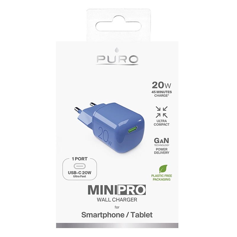 Chargeur mural USB-C GaN Puro MiniPro Puro - 20W - Bleu
