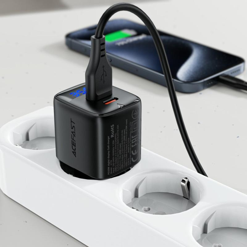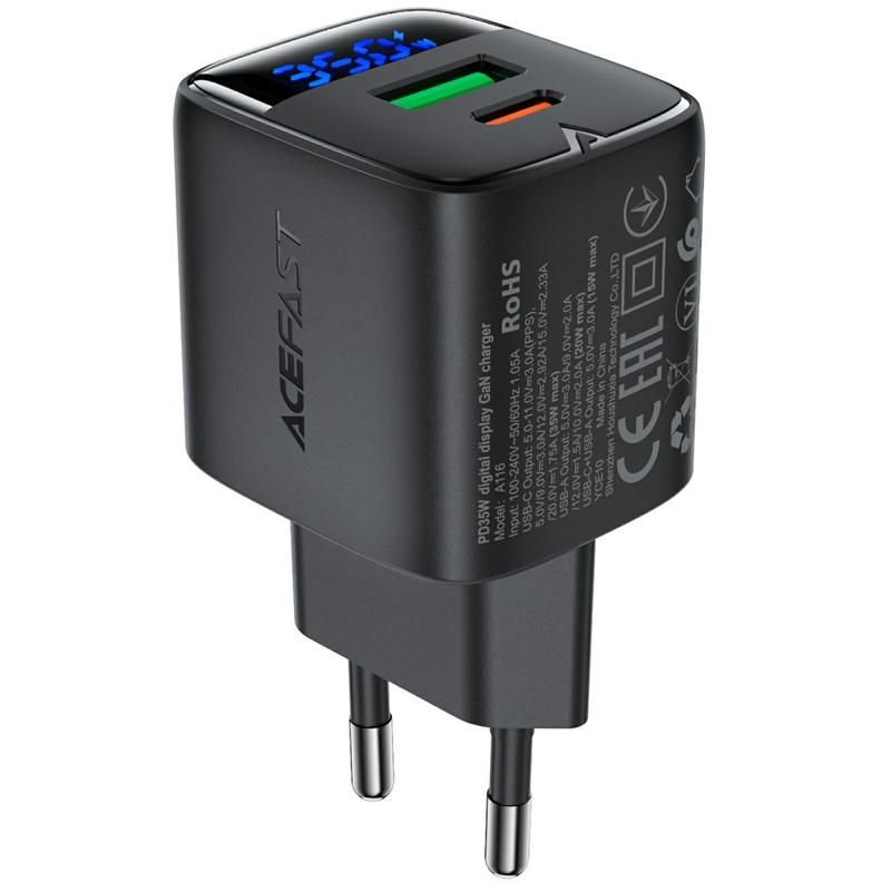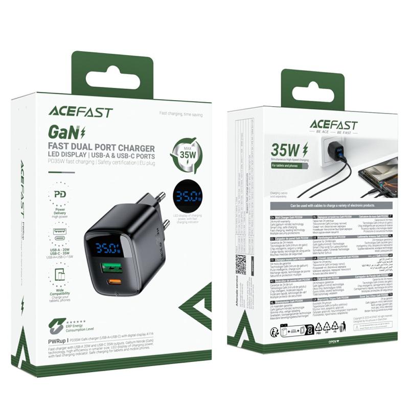 Chargeur rapide Acefast A116 GaN 35W à double port avec affichage LED de la puissance