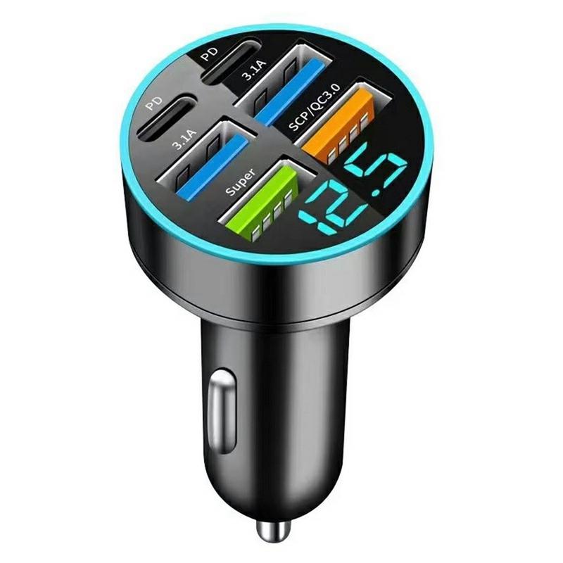 • Chargeur de voiture 100W à 6 ports - Adaptateur de charge rapide PD & QC3.0 avec affichage de la tension