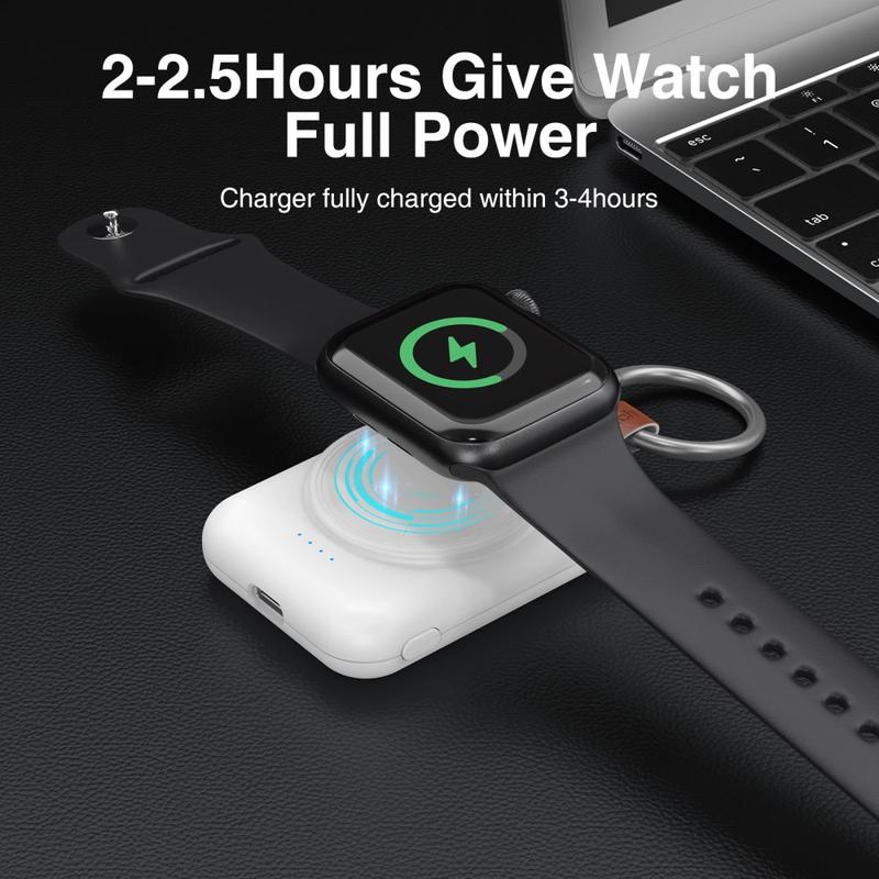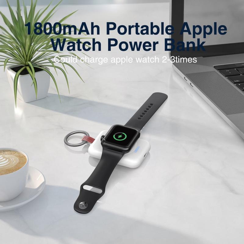• A-04 Mini chargeur sans fil portable pour Apple Watch - 1800mAh Power Bank avec boucle d'anneau