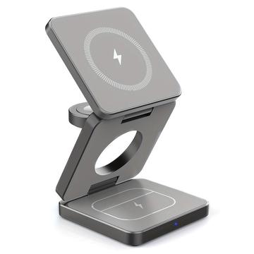 Chargeur sans fil magnétique pliable 3-en-1 de poche - Gris
