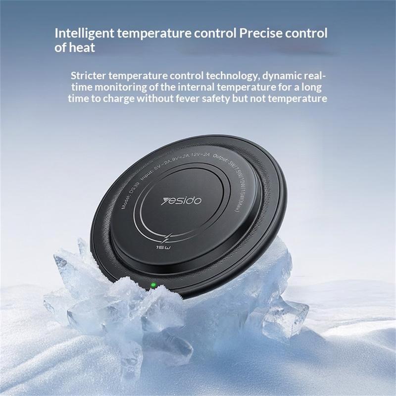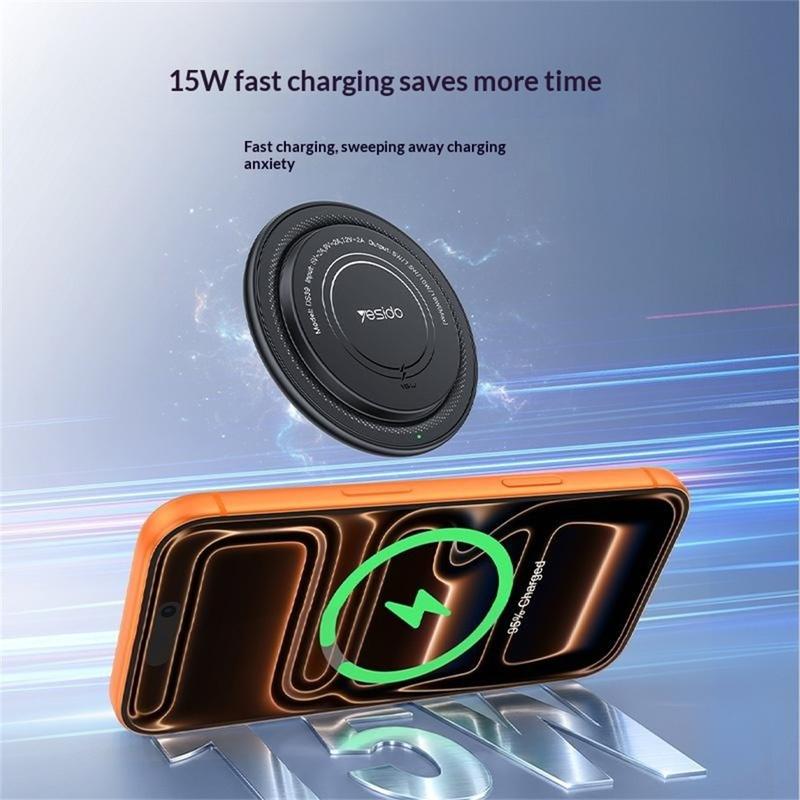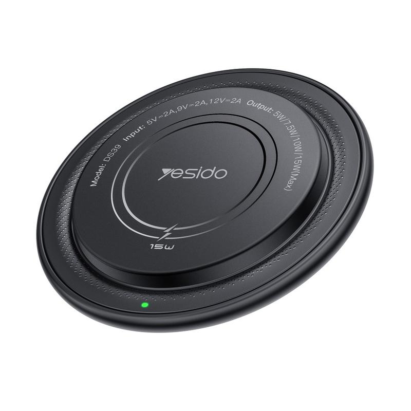 Chargeur sans fil magnétique Yesido DS39 15W - Tapis de recharge rapide rond de bureau pour smartphones et écouteurs sans fil