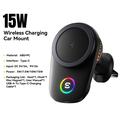 Chargeur sans fil magnétique Essager 15W avec support pour voiture, ventilateur de refroidissement, éclairage RGB et fixation pour grille d'aération - Compatible MagSafe