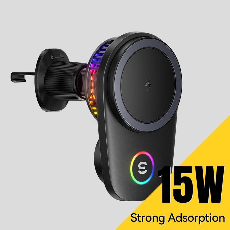 Gardez votre téléphone chargé, bien en vue et solidement fixé grâce au chargeur de voiture sans fil magnétique ESSAGER 15W. Conçu pour les conducteurs à la recherche d'une installation plus épurée et plus pratique, ce support pour grille d'aération combine une recharge sans fil rapide, une fixation magnétique puissante et un système de refroidissement actif dans un seul accessoire compact. L'éclairage RVB intégré apporte une touche de modernité, tandis que la rotation à 90° permet de passer facilement du mode portrait au mode paysage pour la navigation, les appels ou le contrôle de la musique.