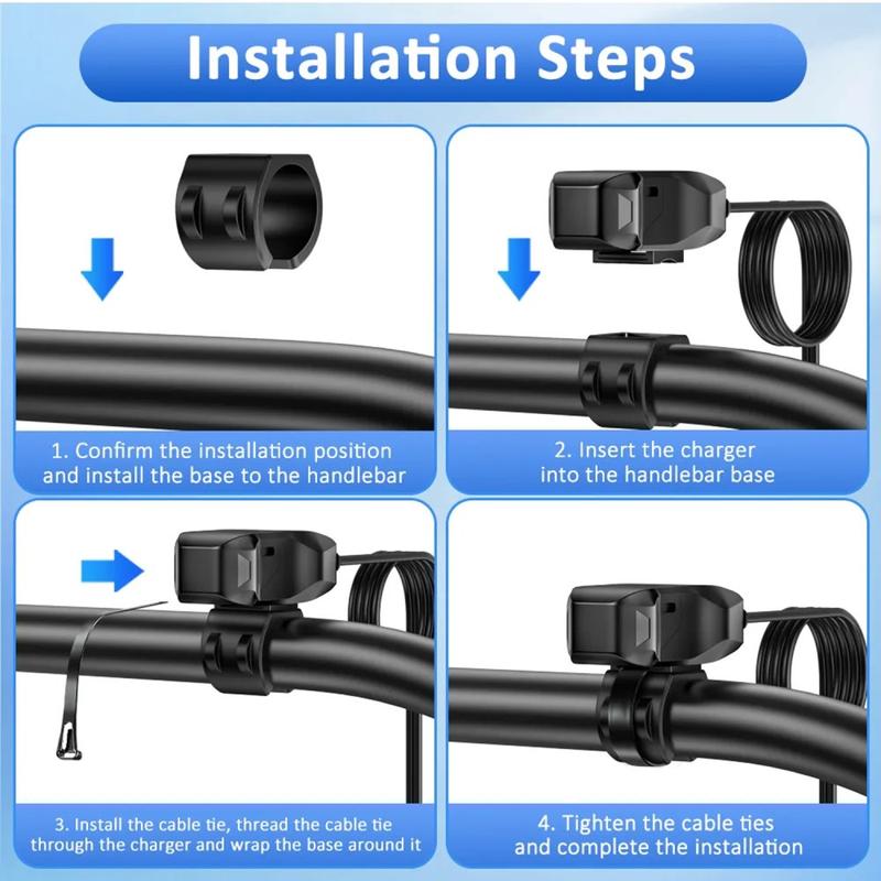 - Installation plug-and-ride - le connecteur SAE s'adapte aux batteries ou aux câbles d'accessoires existants ; il s'adapte au guidon en quelques minutes grâce à la pince fournie.