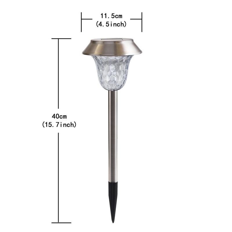 Quatre élégants piquets en acier inoxydable de 41 cm, chacun surmonté d'un diffuseur de 11,5 cm qui peut briller d'un blanc chaud confortable ou passer par des teintes RVB douces, rehaussent les réunions nocturnes. Un panneau de polysilicium à haut rendement de 2 V / 100 mA recharge la batterie Ni-MH intégrée de 1,2 V 800 mAh après 6 à 8 heures d'ensoleillement direct, puis fournit jusqu'à 12 heures de lumière, automatiquement, grâce au contrôle de l'éclairage du crépuscule à l'aube.