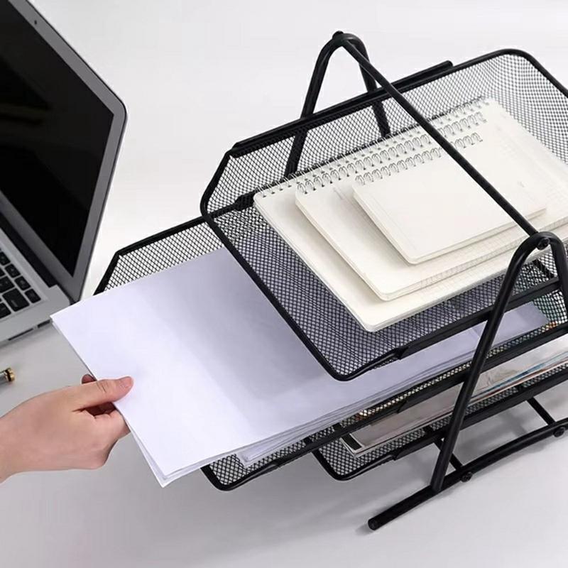 Augmentez votre productivité et récupérez de l'espace sur votre bureau grâce à cet organisateur de dossiers à 3 niveaux en métal. Ses plateaux empilables et extractibles permettent de ranger soigneusement les dossiers, les lettres et les factures, tandis que son design ventilé empêche le papier de s'enrouler et l'humidité de s'accumuler.