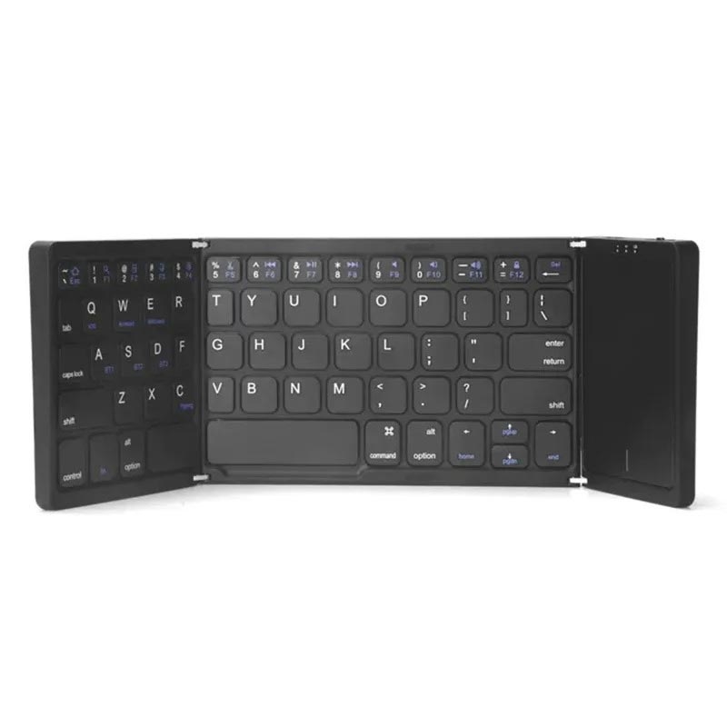 Clavier sans fil pliable B089 avec pavé tactile (81 touches) - QWERTY, compatible Bluetooth multi-appareils, rechargeable via USB-C, touches silencieuses