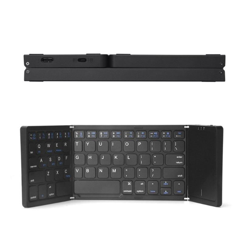 • Clavier sans fil pliable B089 avec pavé tactile (81 touches) - QWERTY, compatible Bluetooth multi-appareils, rechargeable via USB-C, touches silencieuses