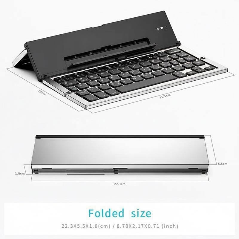 Le clavier 608 Tri-Fold compatible Bluetooth est conçu pour les utilisateurs qui ont besoin de portabilité sans sacrifier la qualité de fabrication. Avec une connectivité double canal et un boîtier en alliage d'aluminium haut de gamme, il vous permet de passer facilement d'un appareil à l'autre tout en bénéficiant d'une expérience de frappe solide et stable. Son design compact et pliable et son support intégré le rendent idéal pour le travail mobile, les voyages et le multitâche quotidien.