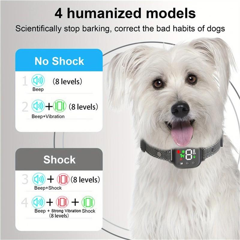 Collier anti aboiement pour chien à écran tactile - Bip et vibration à double moteur, collier de dressage sans choc, étanche IP67