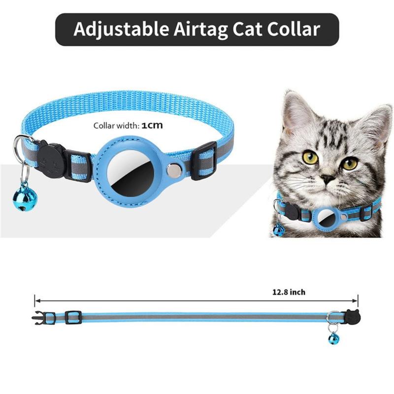 Collier réfléchissant pour animaux de compagnie avec support AirTag 1/2 et clochette - Convient aux chats et aux petits chiens