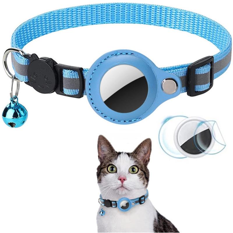 Collier réfléchissant pour animaux de compagnie avec support AirTag 1/2 et clochette - Convient aux chats et aux petits chiens