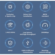 - Commodité Plug & Play - Aucun pilote n'est nécessaire ; il suffit de brancher l'adaptateur sur le port USB de votre ordinateur pour une installation automatique et un accès sans fil instantané.