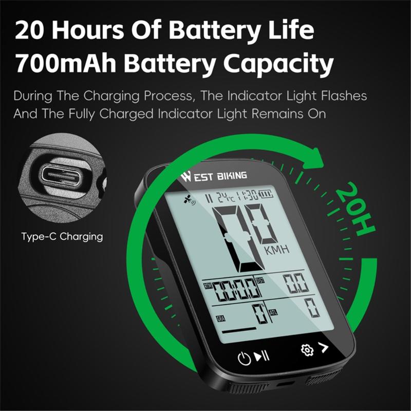 Compteur GPS West Biking YP0702113 pour vélo - Écran antireflet 2,4 pouces, 5 systèmes de positionnement, étanche IPX7, batterie 20 heures, certifié CE