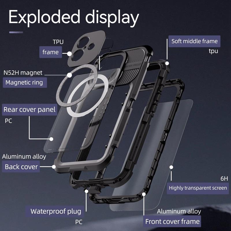 • Coque étanche Shellbox M Series IP68 pour iPhone 16 - Housse de plongée avec compatibilité MagSafe