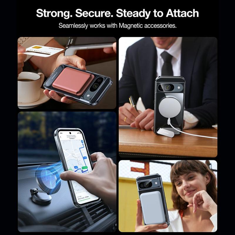 Transformez votre Google Pixel 9/9 Pro en son propre dock de visualisation sans ajouter d'encombrement à votre poche. Le TORRAS Pstand combine un support en acier mince et pliable avec un anneau magnétique de 18 N pour une fixation solide comme le roc aux chargeurs de style MagSafe et aux supports de voiture, le tout enveloppé dans une coque TPU absorbant les chocs.