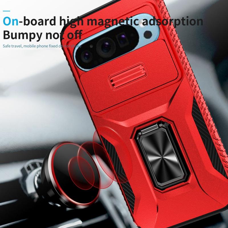 - Coque hybride à anneau rotatif avec protection d'appareil photo pour Google Pixel 9, Pixel 9 Pro