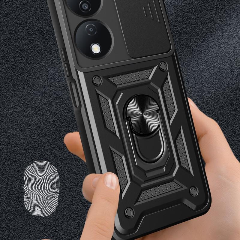 - Coque hybride à anneau rotatif avec protection d'appareil photo pour Honor X7b, Honor 90 Smart