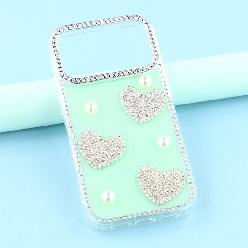Cet étui pour iPhone 17 Pro Max allie une protection quotidienne fiable à un style glamour. Avec ses strass scintillants sur le pourtour et ses décorations en forme de cœur perlé au dos, il transforme votre iPhone 17 Pro Max en un accessoire de mode tout en le protégeant des rayures et des chocs.