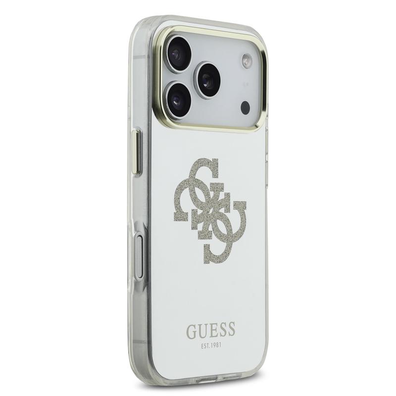 Coque hybride Guess Mirror 4G Glitter Logo pour iPhone 17 Pro - Coque arrière PC/TPU compatible MagSafe avec finition miroir