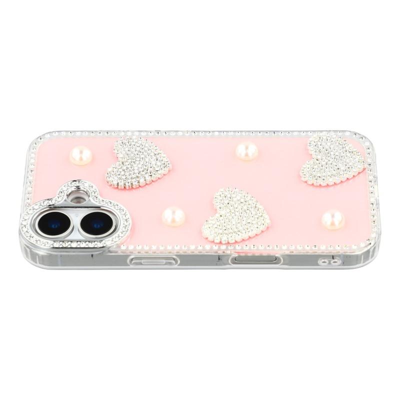 Cet étui pour iPhone 16 allie une protection quotidienne fiable à un style glamour. Avec ses strass scintillants sur le pourtour et ses décorations en forme de cœur perlé au dos, il transforme votre iPhone 16 en un accessoire de mode tout en le protégeant des rayures et des chocs.