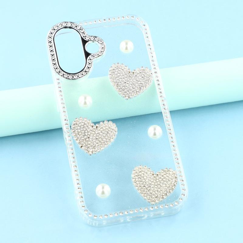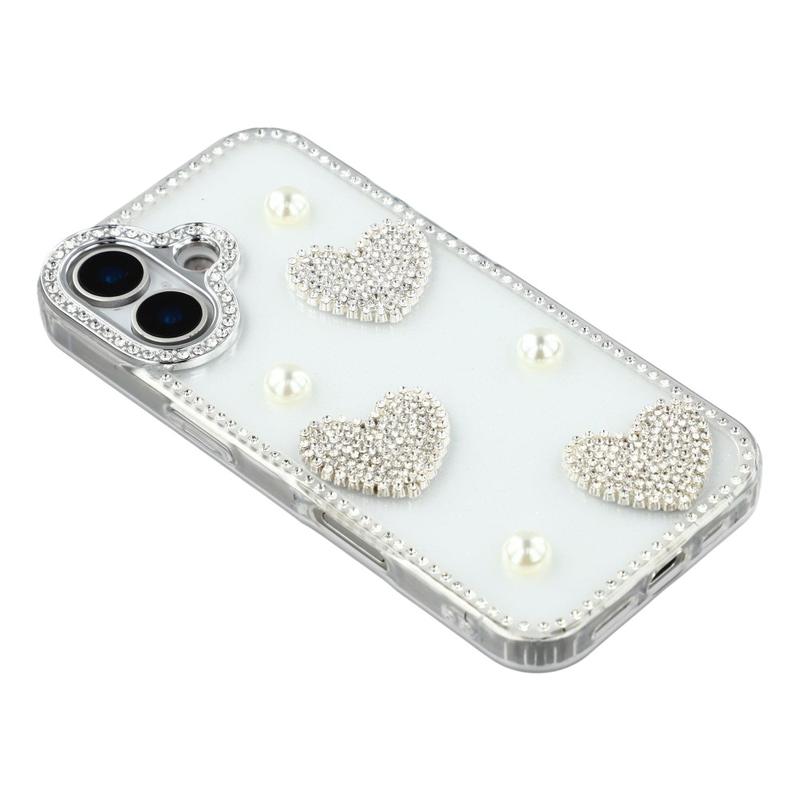 Cet étui pour iPhone 16 allie une protection quotidienne fiable à un style glamour. Avec ses strass scintillants sur le pourtour et ses décorations en forme de cœur perlé au dos, il transforme votre iPhone 16 en un accessoire de mode tout en le protégeant des rayures et des chocs.