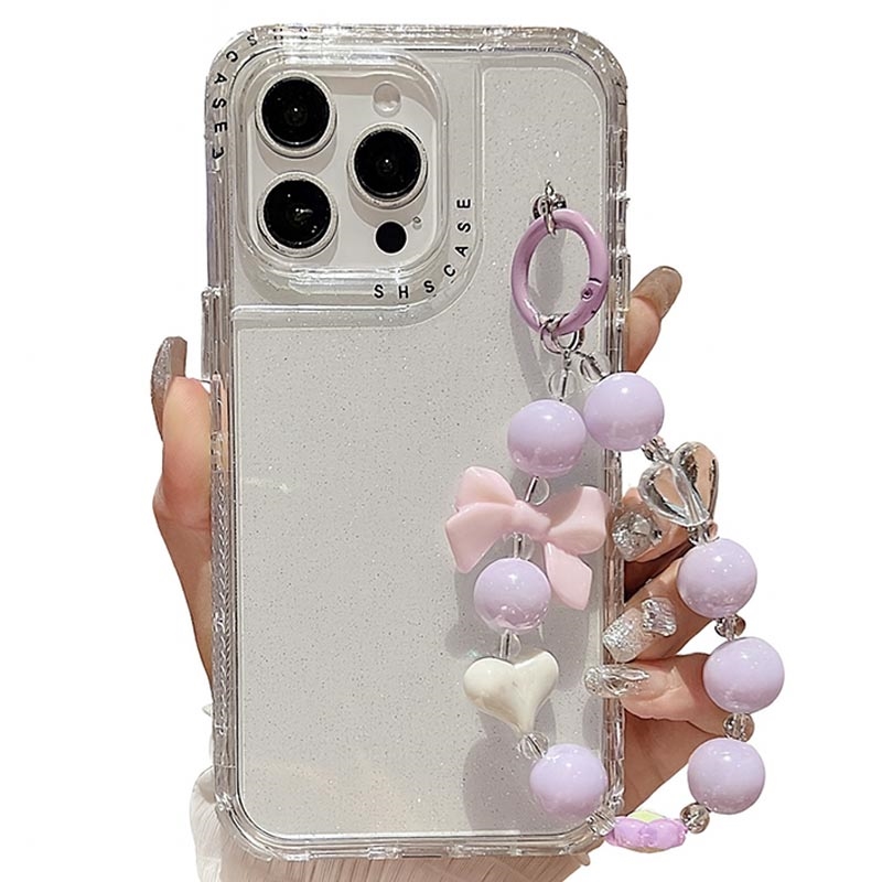 Coque hybride anti-chocs pailletée avec dragonne pour iPhone 16 Pro Max - Coque de protection PC + TPU
