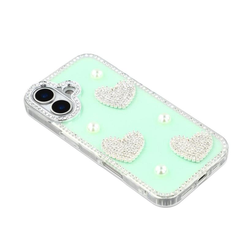 Cet étui pour iPhone 16 allie une protection quotidienne fiable à un style glamour. Avec ses strass scintillants sur le pourtour et ses décorations en forme de cœur perlé au dos, il transforme votre iPhone 16 en un accessoire de mode tout en le protégeant des rayures et des chocs.