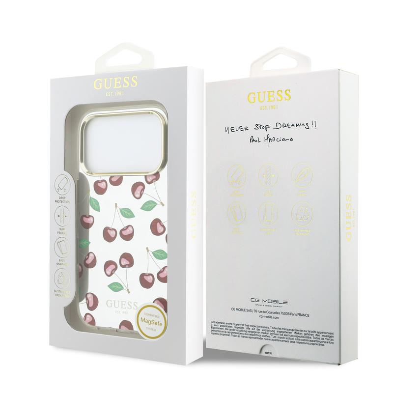 Coque hybride Guess Mirror Glitter Cherry MagSafe pour iPhone 17 Pro Max - Coque arrière protectrice