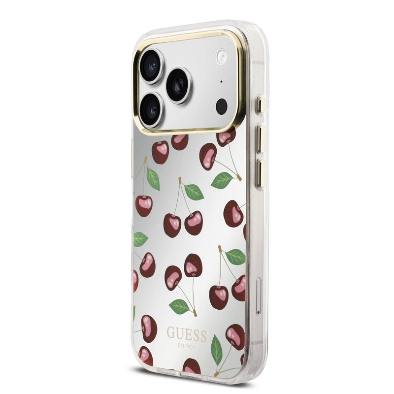 Coque hybride Guess Mirror Glitter Cherry MagSafe pour iPhone 17 Pro - Coque arrière protectrice