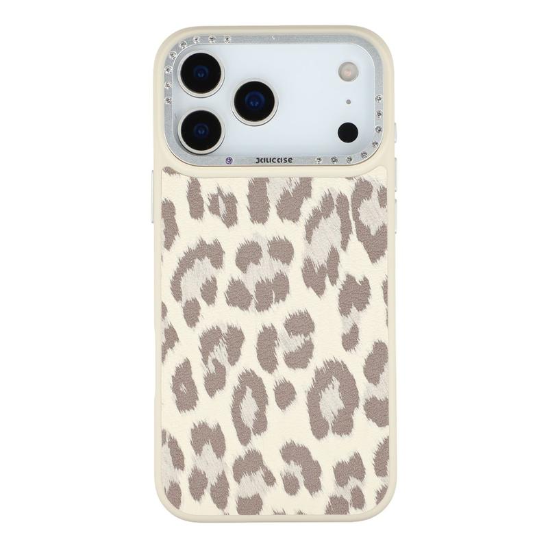 Jaucase Coque hybride magnétique imprimé léopard pour iPhone 17 Pro Max - PU + TPU + PC avec lentille en strass