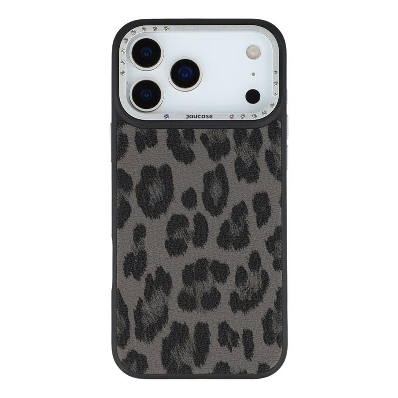 • Jaucase Coque hybride magnétique imprimé léopard pour iPhone 17 Pro - PU + TPU + PC avec lentille en strass