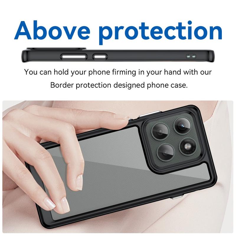 - Construction à deux matériaux - le panneau arrière en acrylique transparent avec les bords en TPU