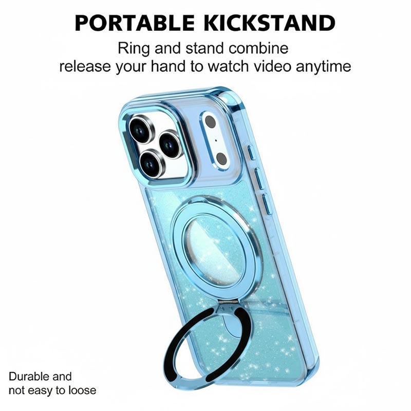 Alliez style et protection avec l'étui pailleté pour iPhone 17 Pro, qui allie élégance et durabilité au quotidien. Fabriqué à partir de matériaux de haute qualité et doté d'une béquille métallique intégrée, cet étui permet à votre téléphone de rester sécurisé, fonctionnel et à la mode tout au long de la journée.