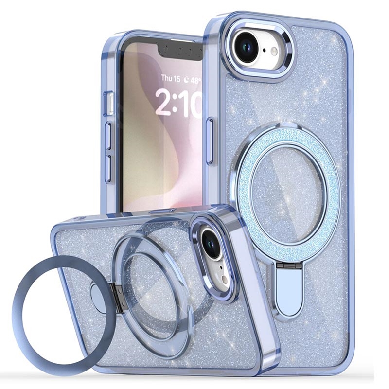 Coque pailletée avec Kickstand pour iPhone 16e - Coque Kickstand hybride TPU + PC compatible MagSafe