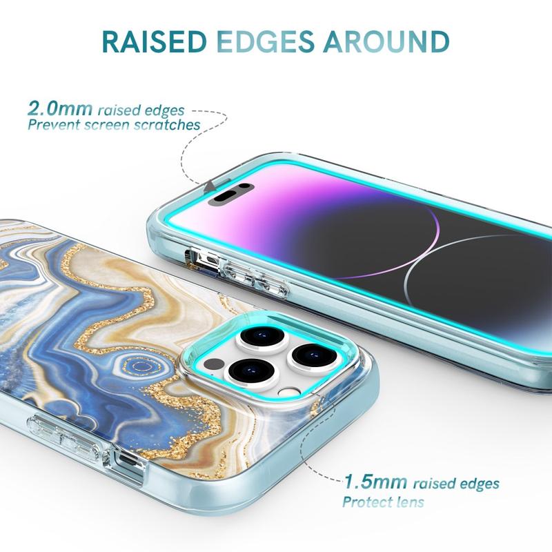 Coque hybride protection 360 iPhone 14 Pro Max Ahastyle WE13 - Marbre bleu
