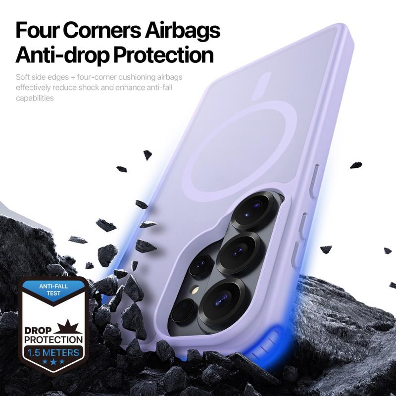 Protégez votre Samsung Galaxy S26 Ultra avec une élégante coque mate qui se fixe directement sur les chargeurs et accessoires MagSafe. La série Yind associe une plaque arrière en PC résistante aux rayures à des bords en TPU absorbant les chocs et à un anneau magnétique aligné avec précision, offrant une alimentation sans câble et une protection contre les chutes sans pochettes encombrantes.