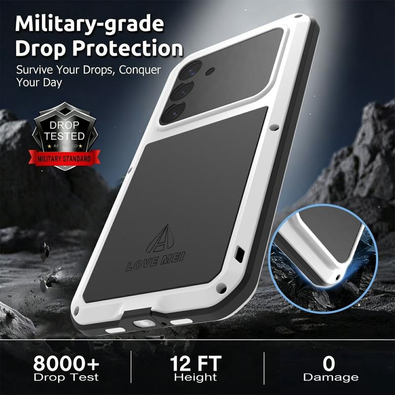 L'étui hybride Love Mei Powerful transforme votre Samsung Galaxy S26+ en forteresse. Associant une protection de qualité militaire, une ingénierie de précision et la commodité du chargement sans fil, il garantit que votre téléphone est prêt à tout, de la vie urbaine aux conditions extrêmes.
