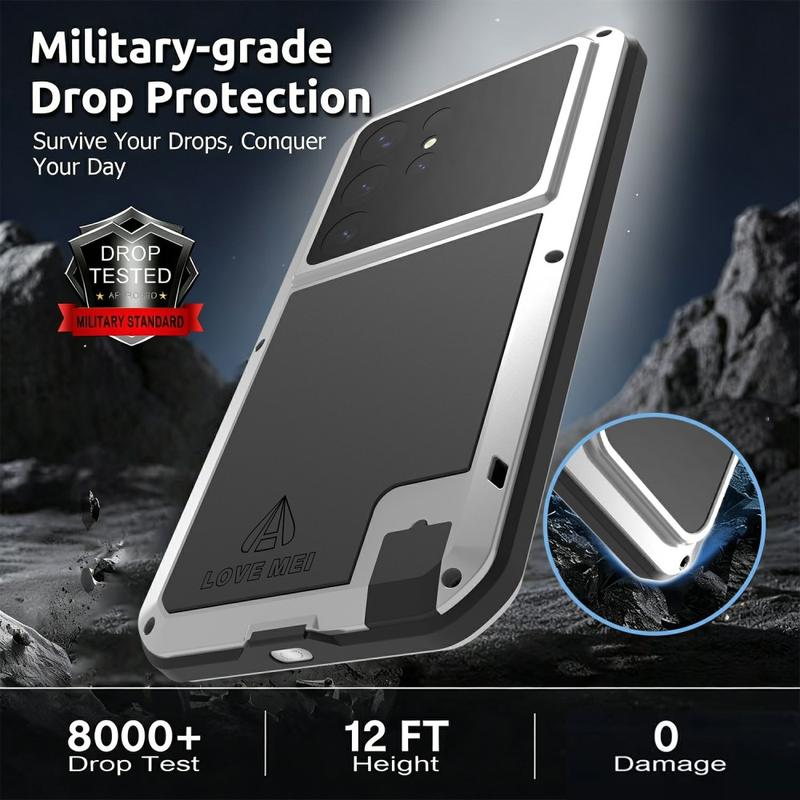 L'étui hybride Love Mei Powerful transforme votre Samsung Galaxy S26 Ultra en forteresse. Associant une protection de qualité militaire, une ingénierie de précision et la commodité du chargement sans fil, il garantit que votre téléphone est prêt à tout, de la vie urbaine aux conditions extrêmes.